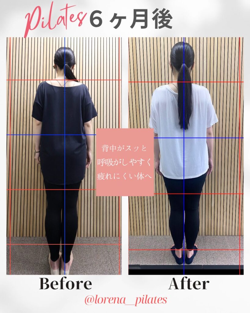 今回は、当スタジオで 6ヶ月間マシンピラティスに取り組まれたモニター様 のビフォーアフターをご紹介します。